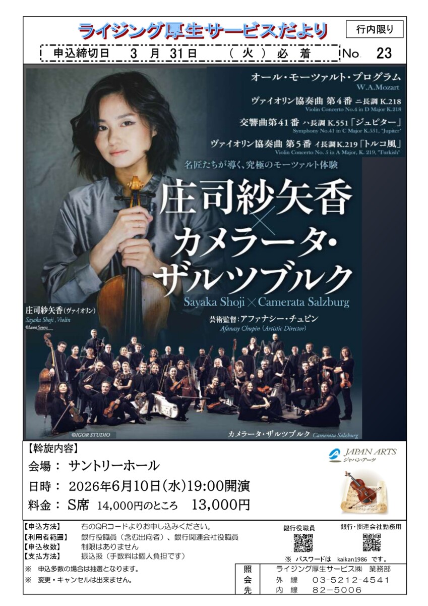 チケット(東京) 業務部:03-5212-4541 内線:82-5006