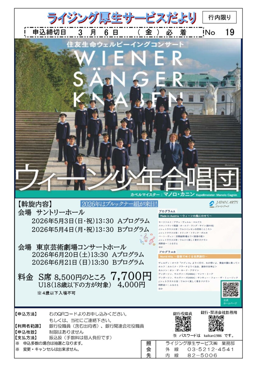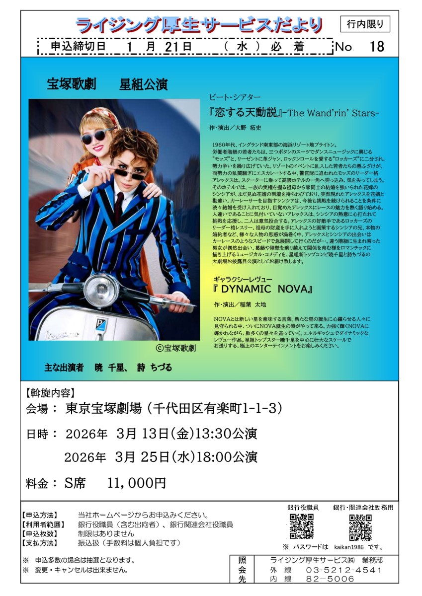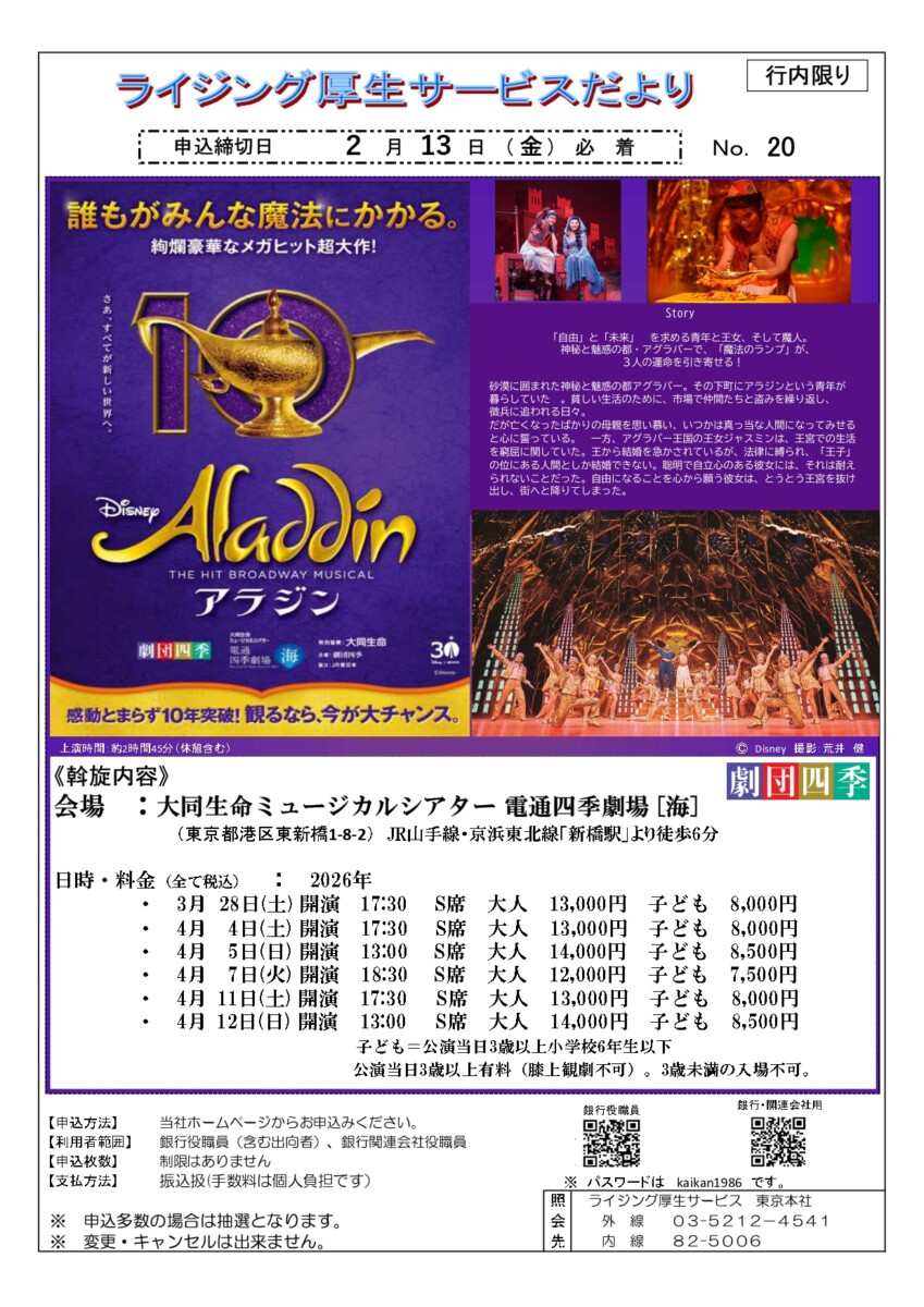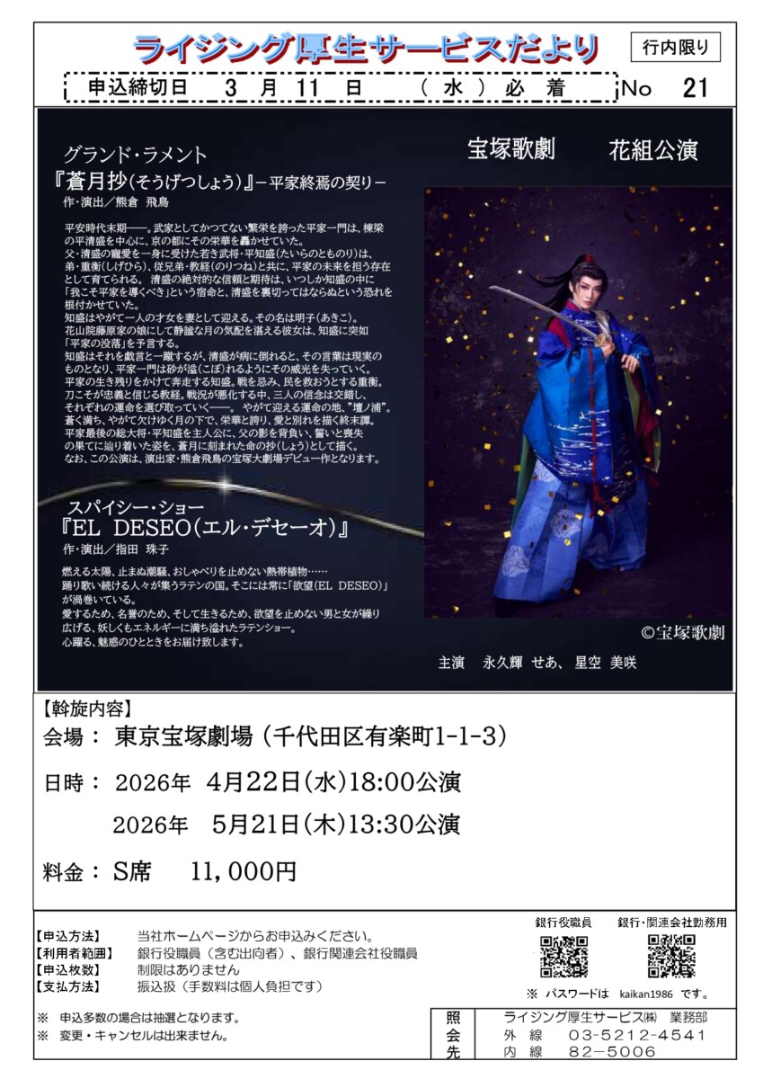 チケット(東京) 業務部:03-5212-4541 内線:82-5006