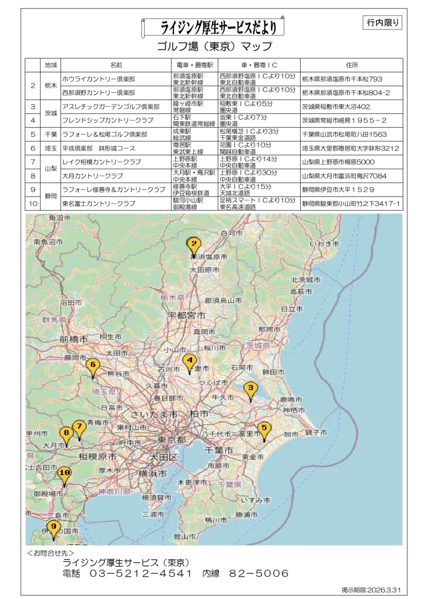 ゴルフ場(東京) 業務部:03-5212-4541 内線:82-5006
