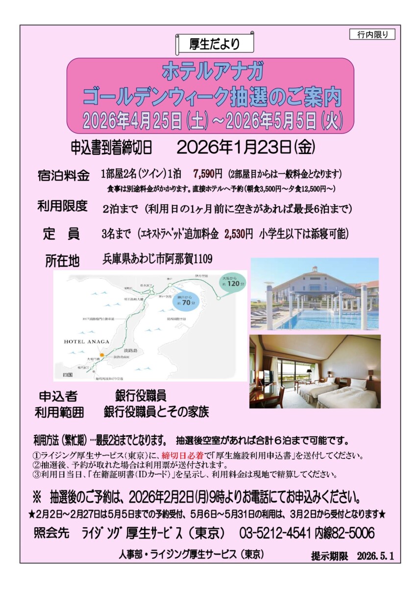 契約施設(東京) 業務部:03-5212-4541 内線:82-5006