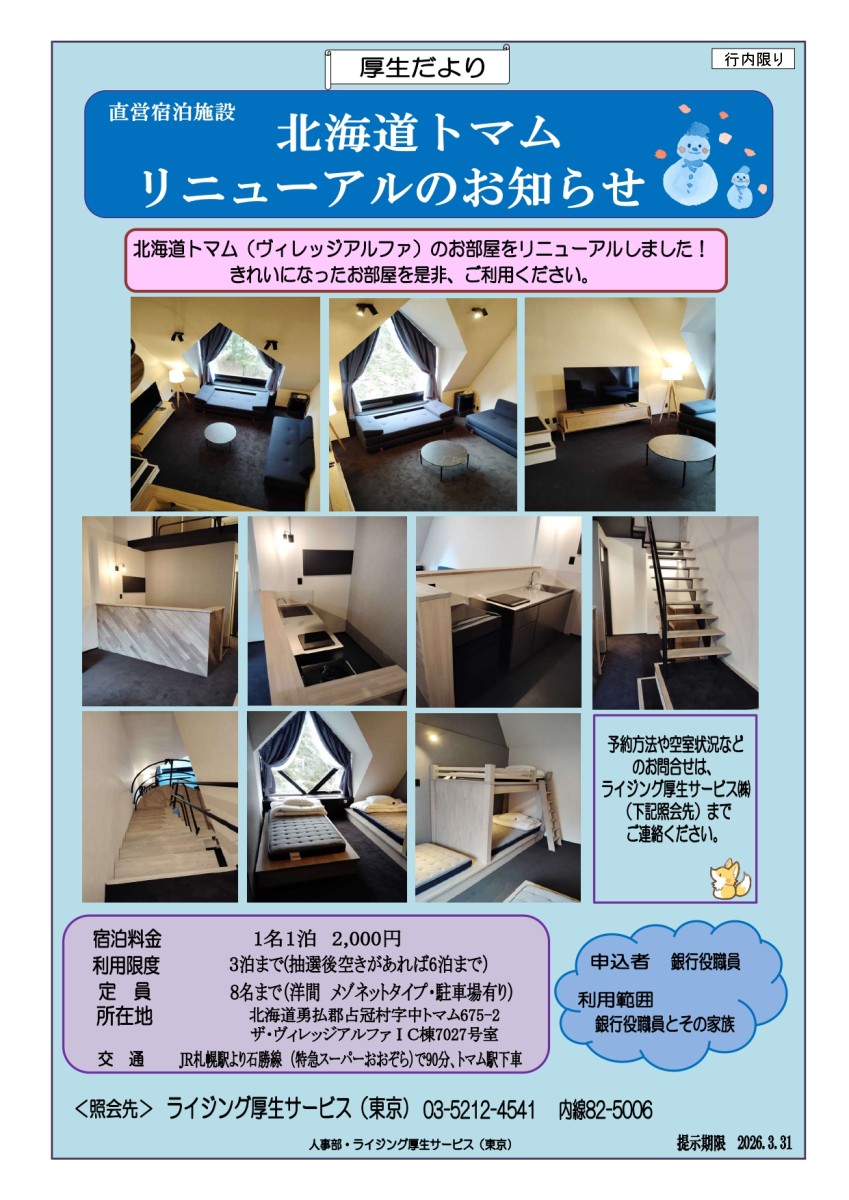 ●住友発哺山寮が再開致しました(2025年8月1日宿泊分より)。ご希望者は業務部宛ご一報ください
